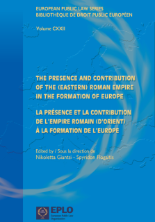 In this EPLS volume are published the proceedings of a colloquium, organized in Athens from the 18th to the 19th of April 2013, by the European Public Law Organization, on the subject “The Presence and Contribution of the (Eastern) Roman Empire in the Formation of Europe”. The colloquium was organized with the kind support of the Ecole française d’Athènes and the Hellenic Bank Association.